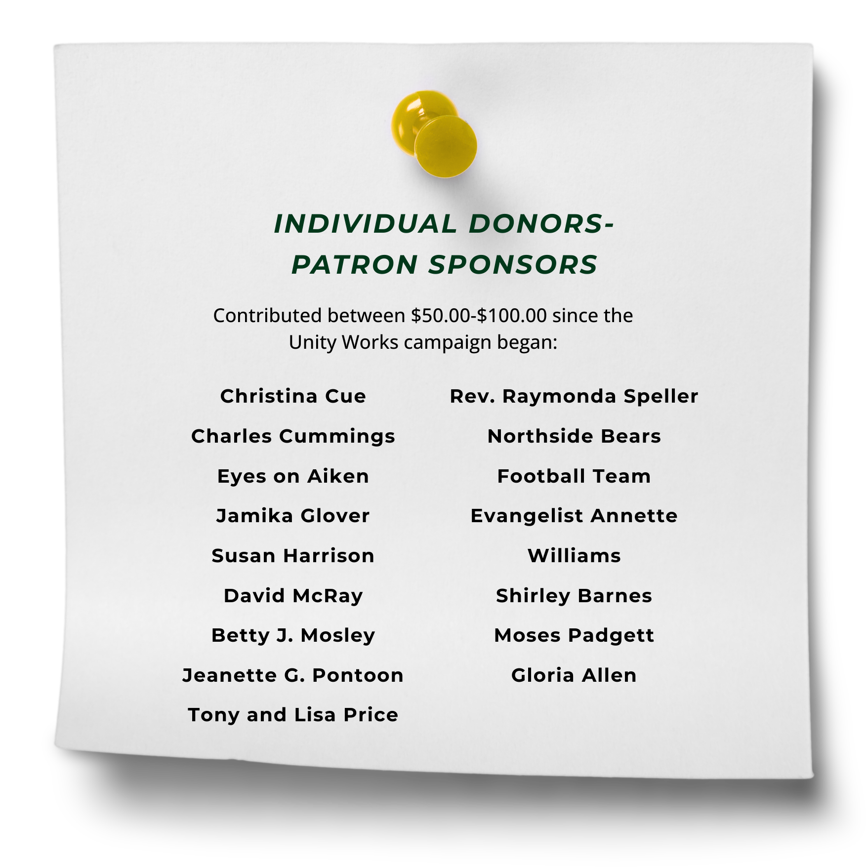 The Unity Works Fundraising Campaign is Umoja Village's year-round fundraiser for individuals, businesses, churches, and organizations to donate undesignated funds to help meet the overall mission needs of Umoja Village, which includes the continued operations of the Richard Johnson Jr. Umoja Village Resource Center and critical crime prevention initiatives outlined in the Umoja Village Rebuilding The Foundation Crime Prevention Plan.