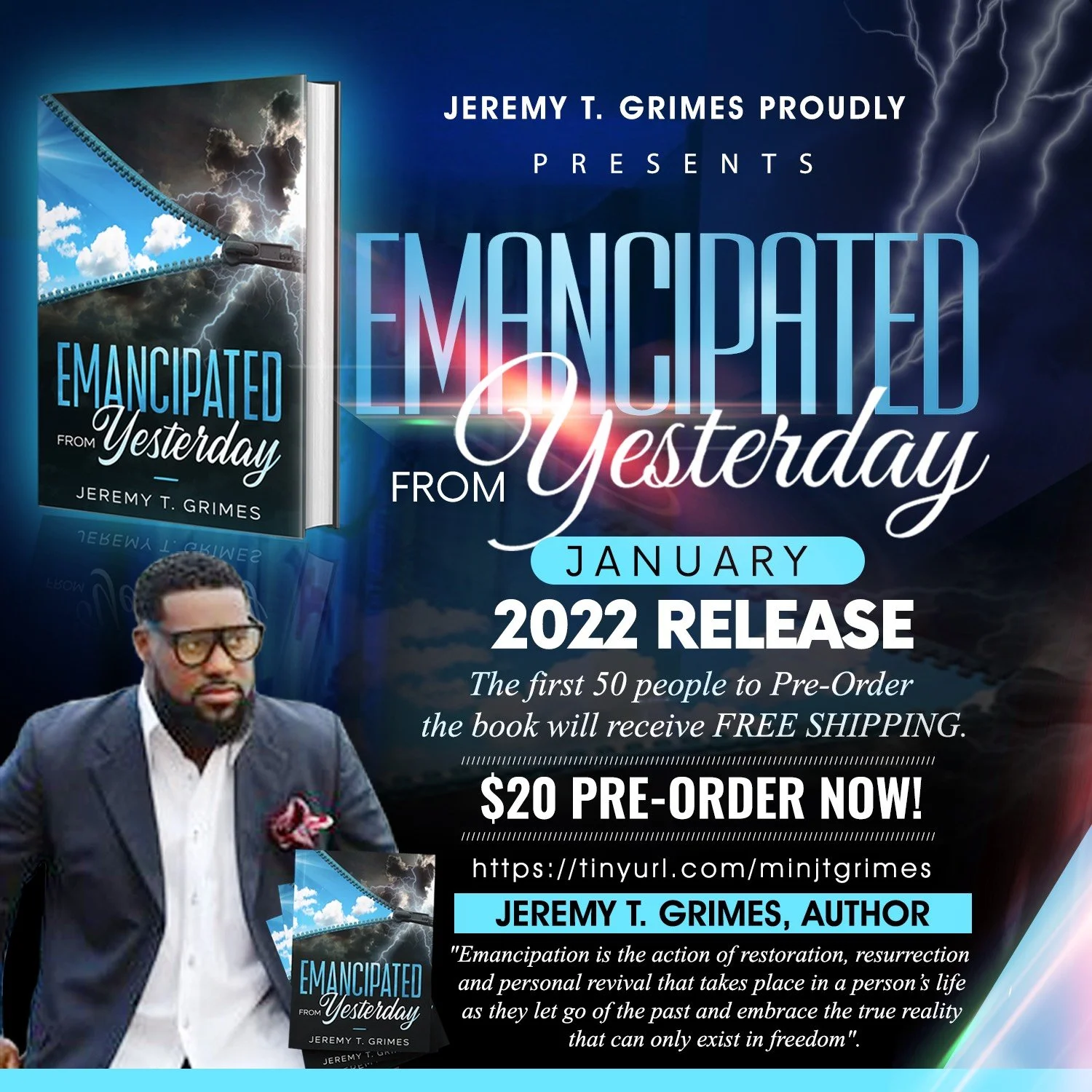 Emancipated From Yesterday Book Release Saturday, March 26, 2022 10:00 AM 10:00 Thursday, March 31, 2022 11:00 AM 11:00 Google Calendar ICS SPONSORING ORGANIZATIONJT Grimes MinistriesOrder by link Https://tinyurl.com/minjtgrimes or at Amazon.comREGISTRATION LINK/NUMBERHttps://tinyurl.com/minjtgrimes View fullsize
