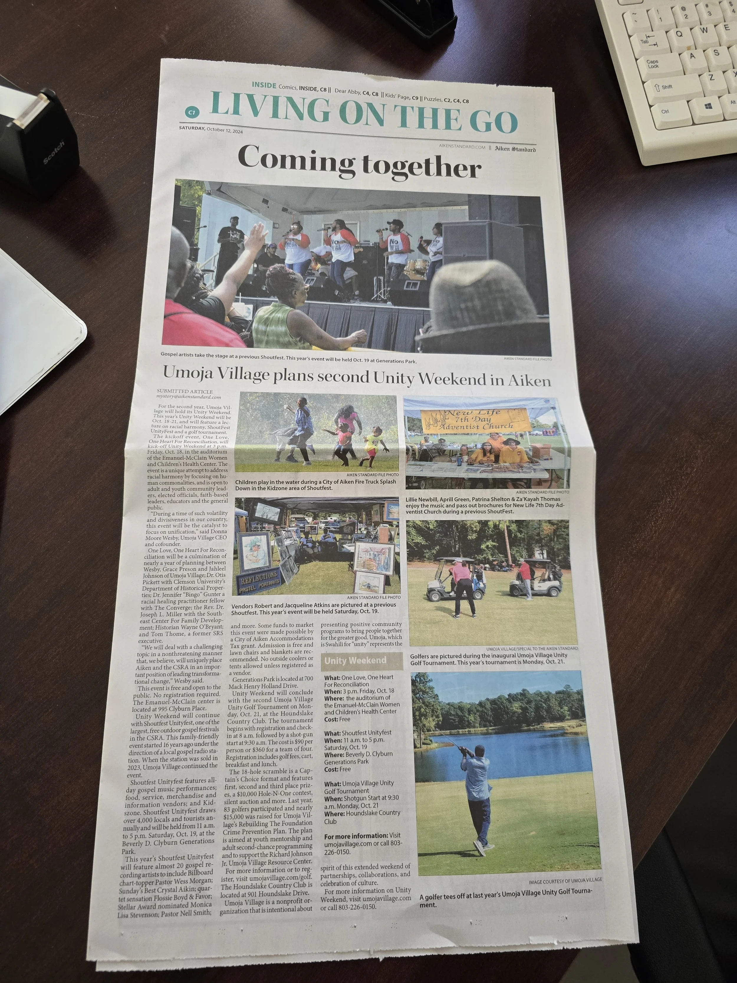 For the second year, Umoja Village will hold its Unity Weekend. This year's Unity Weekend will be Oct. 18-21, and will feature a lecture on racial harmony, ShoutFest UnityFest and a golf tournament.